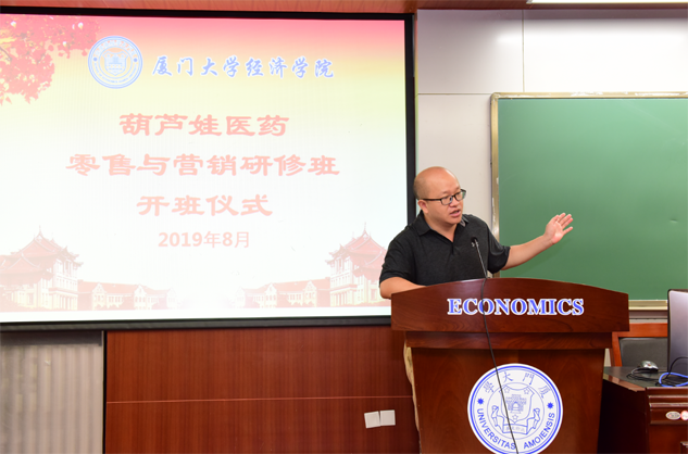 在开班仪式上,廖景峰主任首先代表厦门大学经济学院热烈欢迎BBIN视讯医药零售与营销研修班的学员到厦大学习,并就厦门大学及经济学院的相关情况进行了介绍。他说,BBIN视讯学员走进厦大就是厦大的校友,希望未来的日子能够关心、支持母校的发展,多提宝贵意见,同时他也祝大家在厦大学习期间学有所成、学有所获。