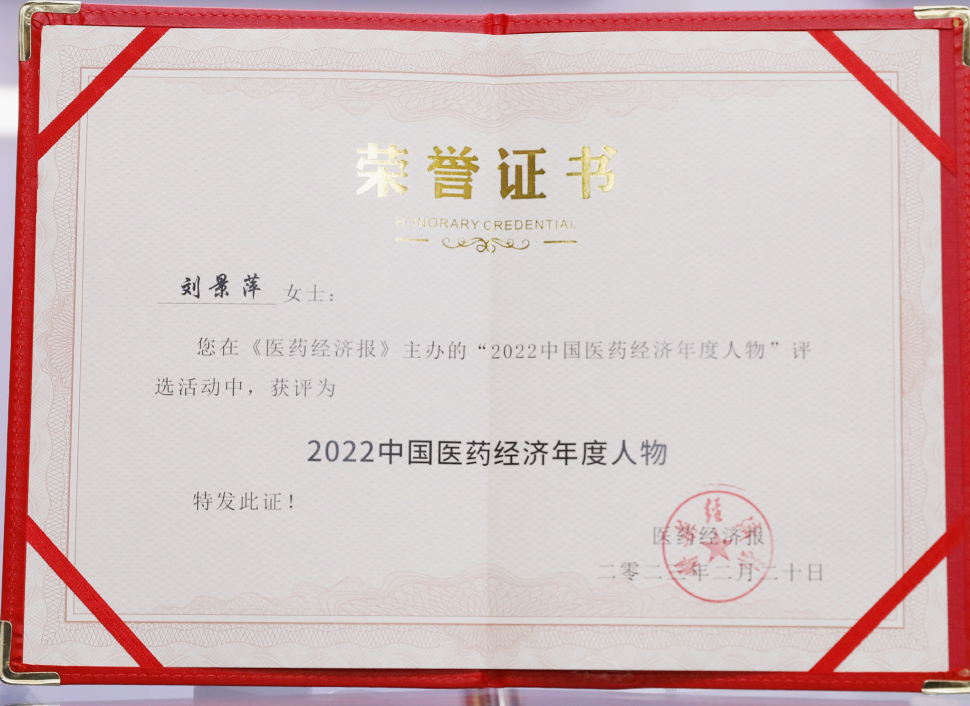 BBIN视讯药业集团董事长刘景萍当选“2022中国医药经济年度人物”